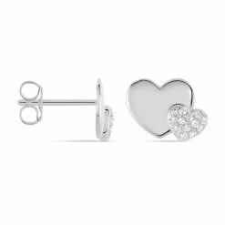 Histoire D’Or Boucles D’oreilles Puces Daria Double Coeurs Or Blanc Oxyde