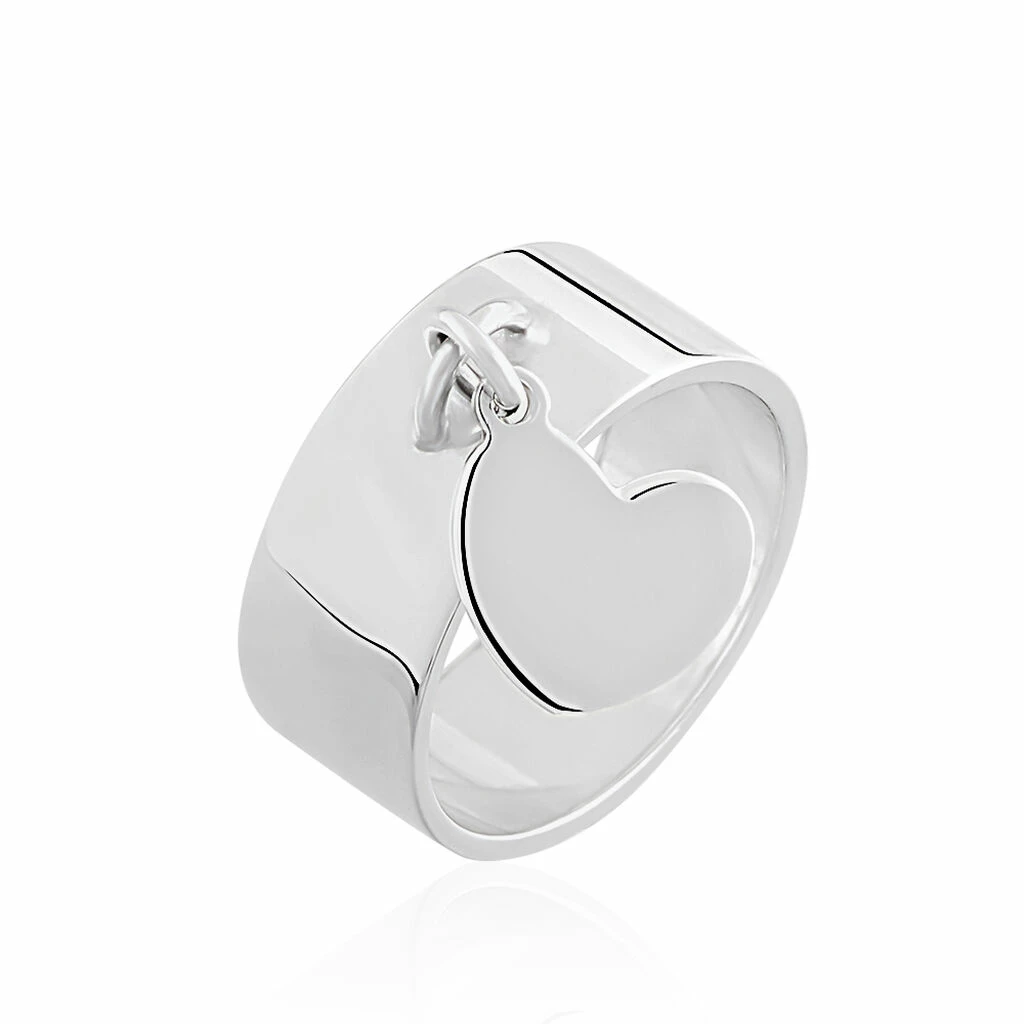 Bague Argent 925/1000 Anneau Large Pampille Forme Cœur