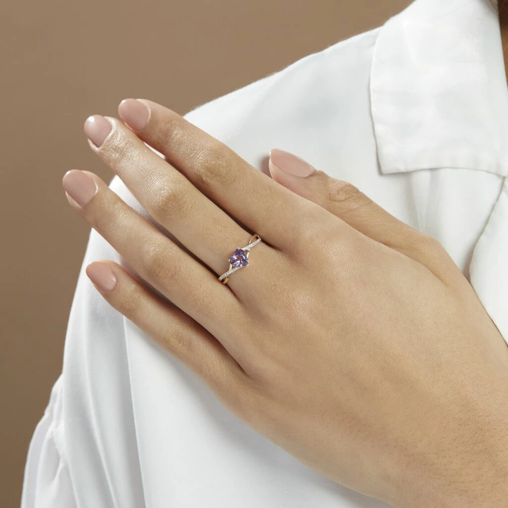 Bague Clothilde Or Jaune Amethyste Et Oxyde De Zirconium