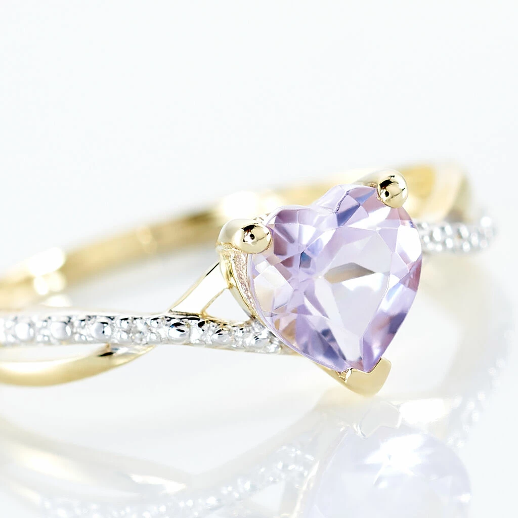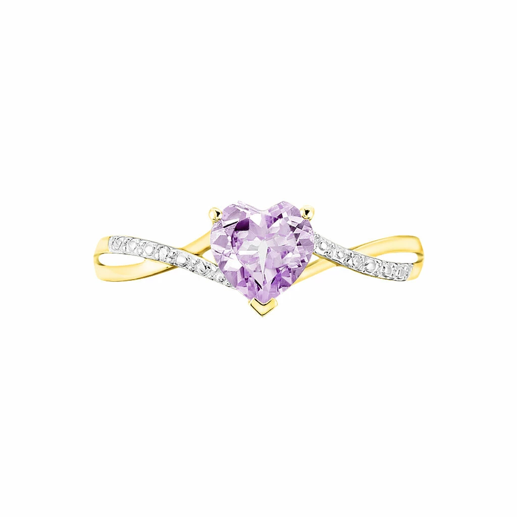 Bague Or Jaune 375/1000 Coeur Amethyste Violette 0.9ct Et Oxydes De Zirconium