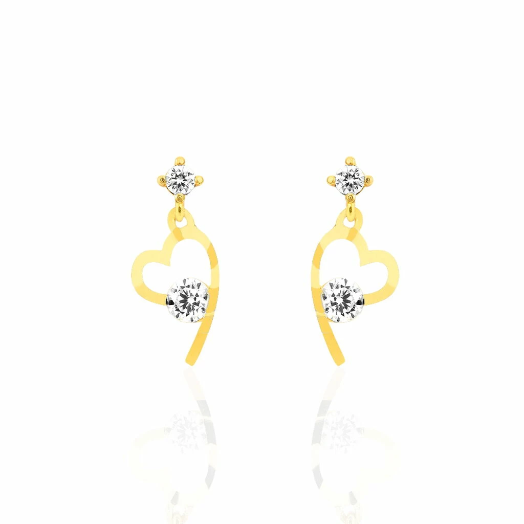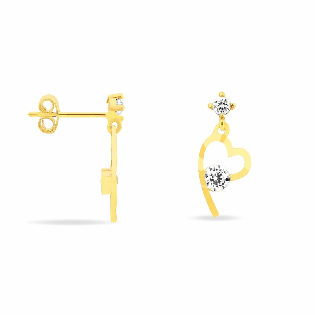 Boucles D’oreilles Or Jaune 375/1000 Oxydes De Zirconium Central Motif Cœur