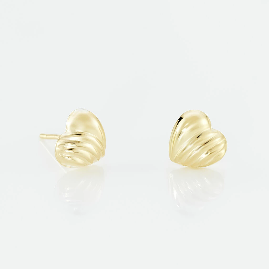 Boucles D’oreilles Or Jaune 375/1000 Cœur Strie Pm
