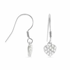 Boucles D’oreilles Puces Argent Blanc 925/1000 Cœur Sertis Griffes 1 Oxyde De Zirconium