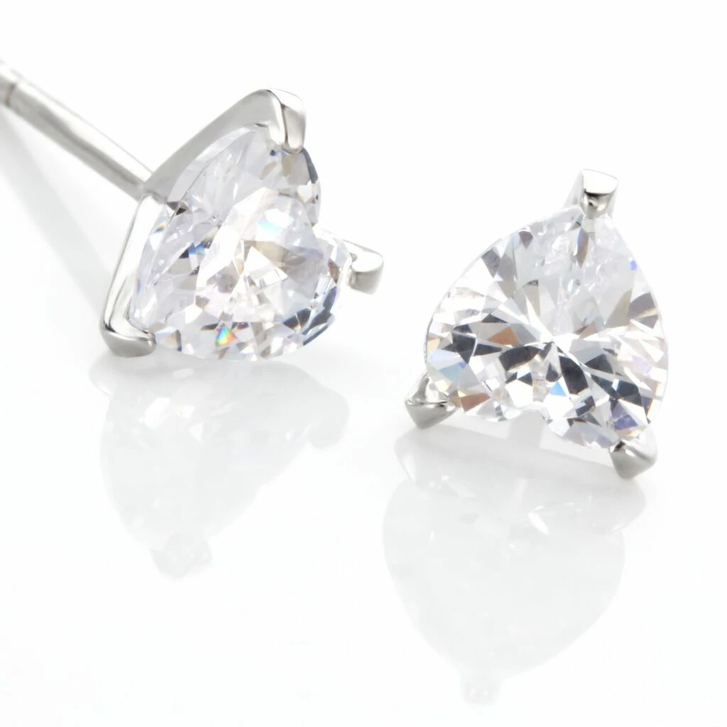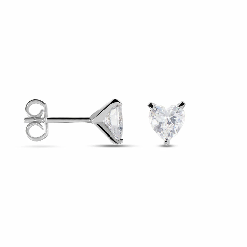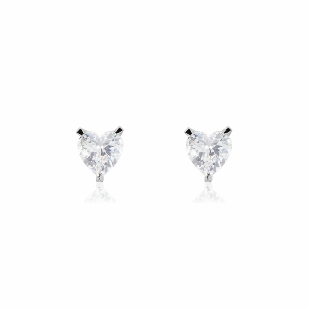 Boucles D’oreilles Puces Argent Blanc 925/1000 Cœurs Serti Griffes Oxydes De Zirconium