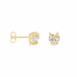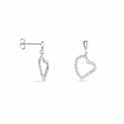 Boucles D’oreilles Puces Argent Blanc 925/1000 Cœurs Sertis Griffes 3 Oxydes De Zirconium