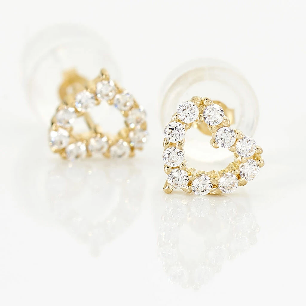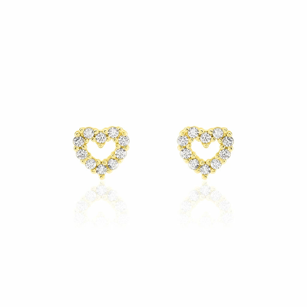 Boucles D’oreilles Puces Coeur Ajoure Or Jaune Oxyde De Zirconium