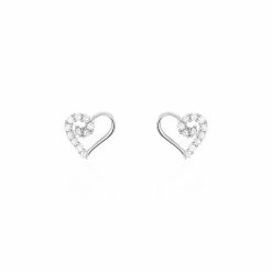 Boucles D’oreilles Puces Daria Cœur Or Blanc Oxyde De Zirconium