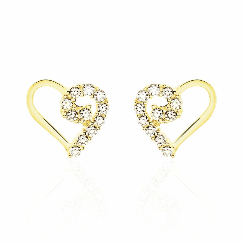 Boucles D’oreilles Puces Daria Cœur Or Jaune Oxyde De Zirconium