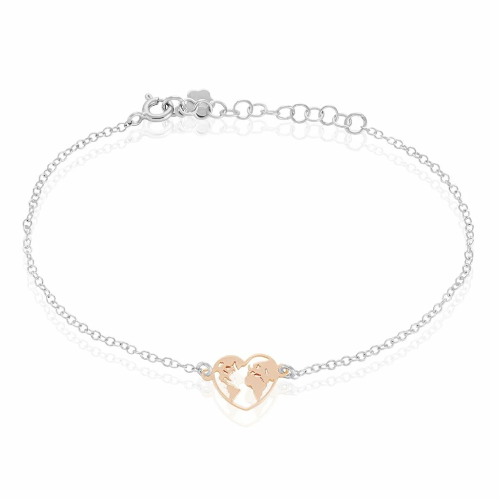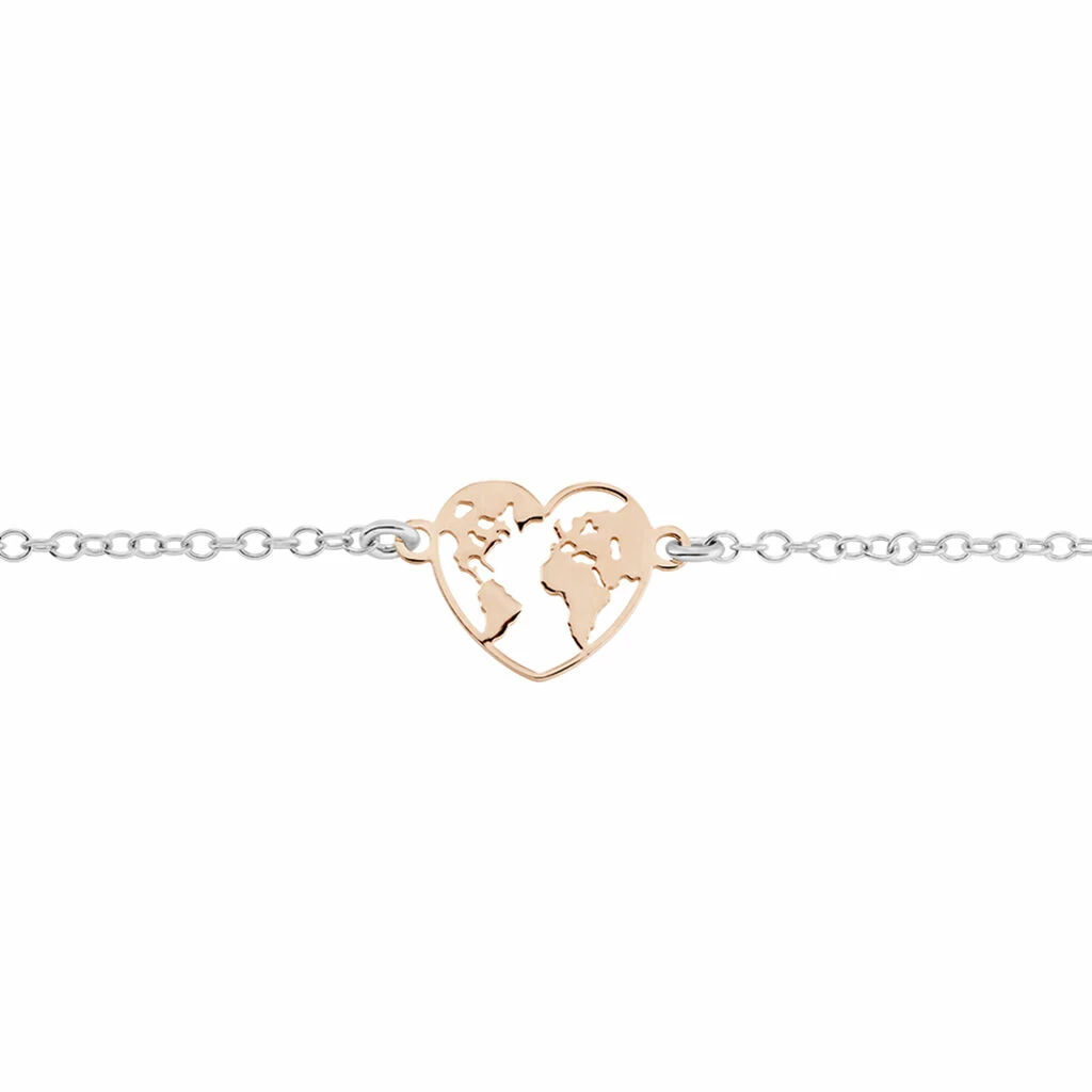 Bracelet Argent Bicolore 925/1000 Carte Forme Coeur Maille Jaseron 19cm