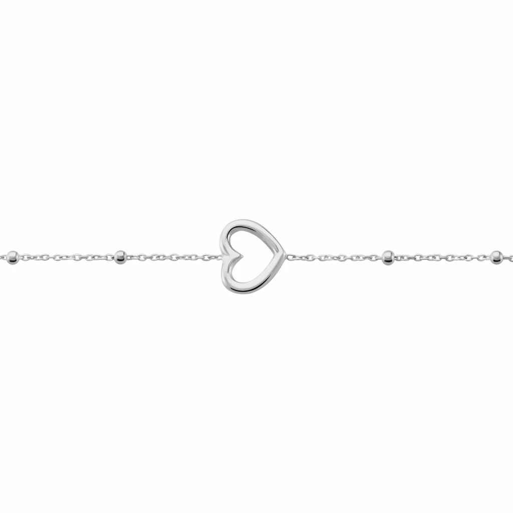 Bracelet Argent Blanc 925/1000 Cœur Ajoure Maille Boules 18cm