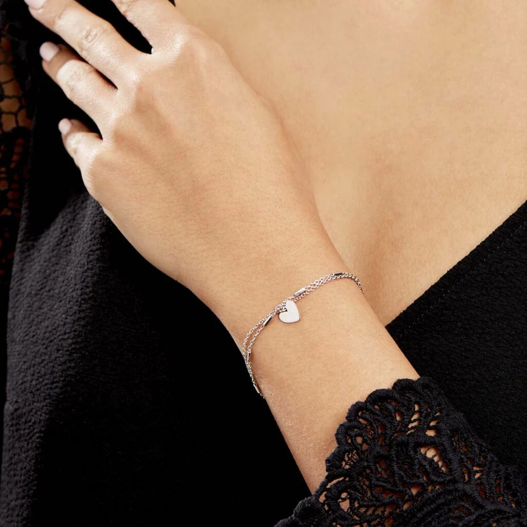 Bracelet Argent Blanc 925/1000 Pampille Cœur Double Mailles Forcat Et Fantaisie 18.5cm