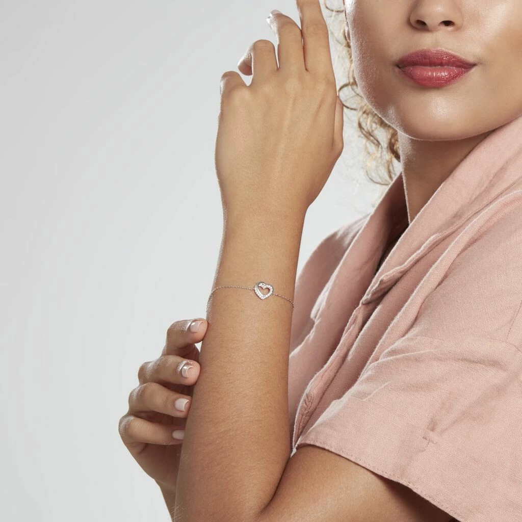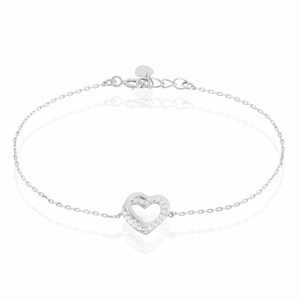 Bracelet Argent 925/1000 Cœur Ajouré Forcat Oxyde De Zirconium 18cm