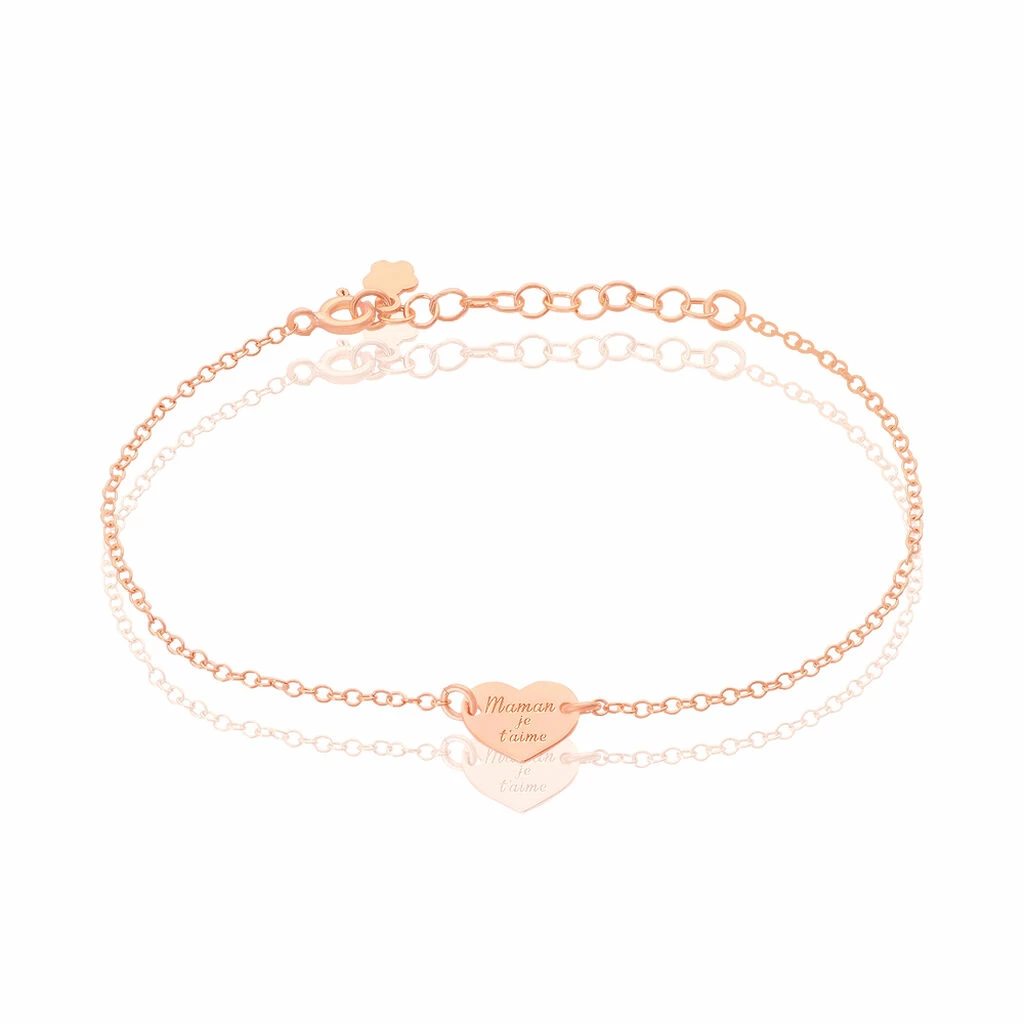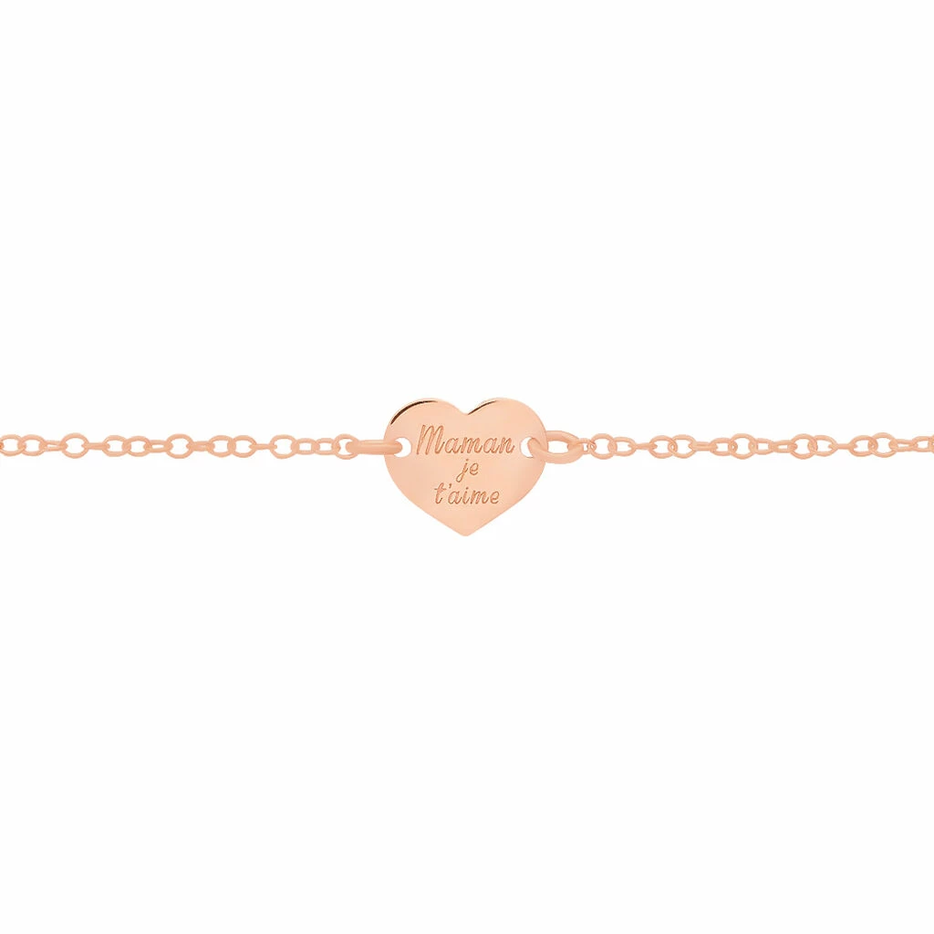 Bracelet Argent Rose 925/1000 Avec Cœur Ecriture Maman Je T’aime 18cm