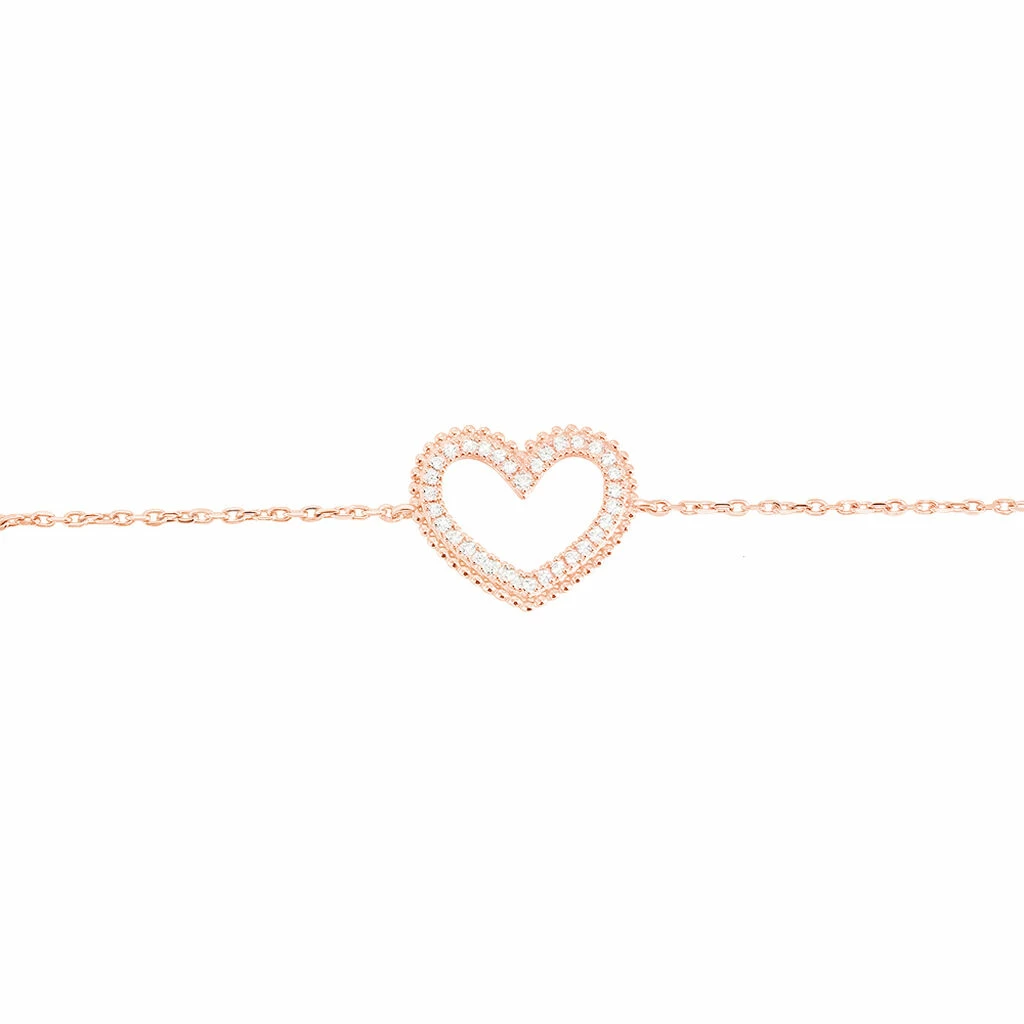 Bracelet Argent Rose 925/1000 Coeur Effet Perle + Oxyde 18cm