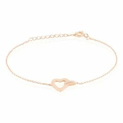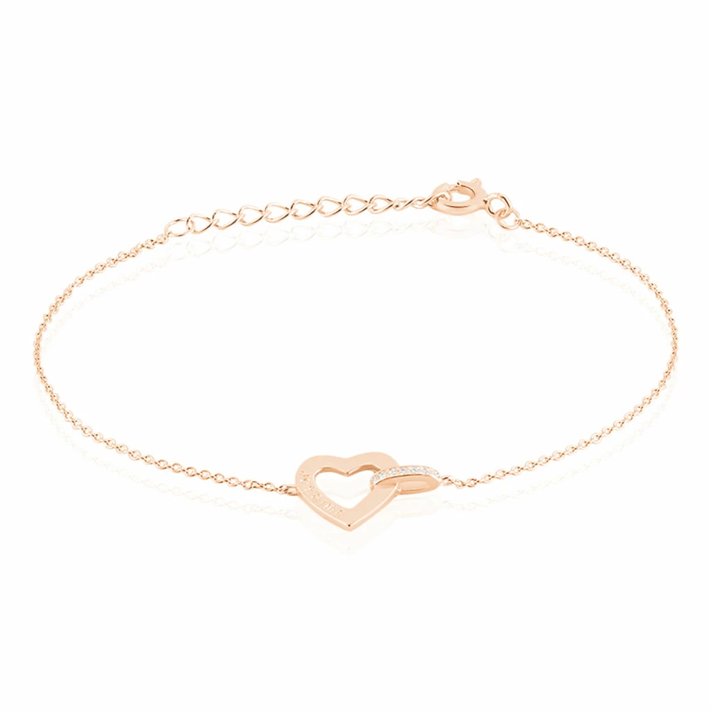 Bracelet Argent Rose 925/1000 Motif Coeur Ajoure Avec Oxydes De Zirconium 18.5cm