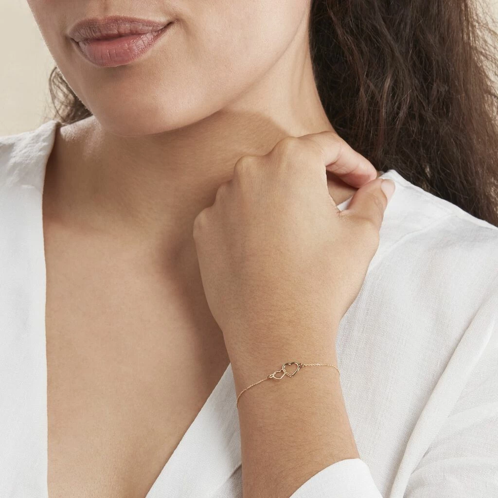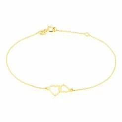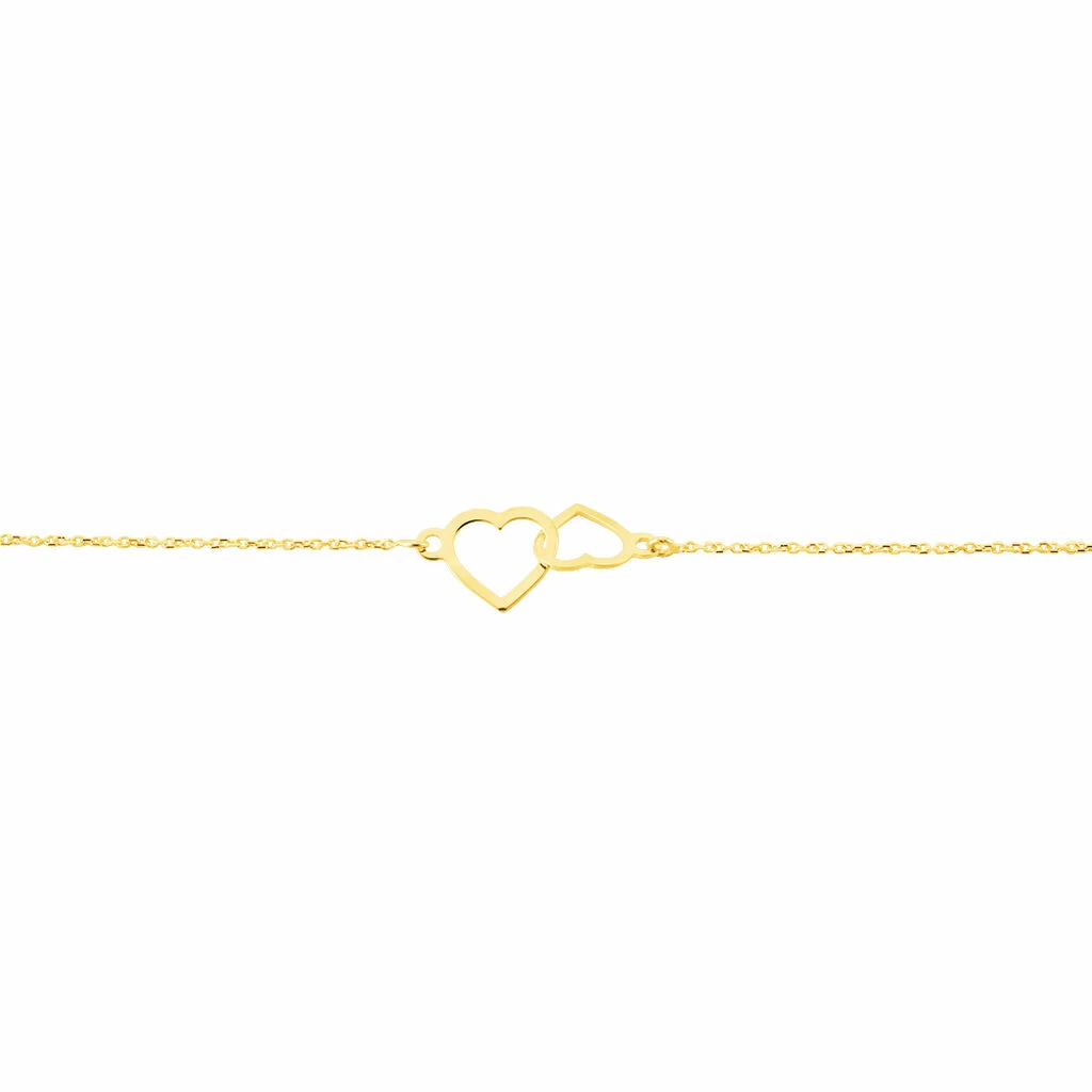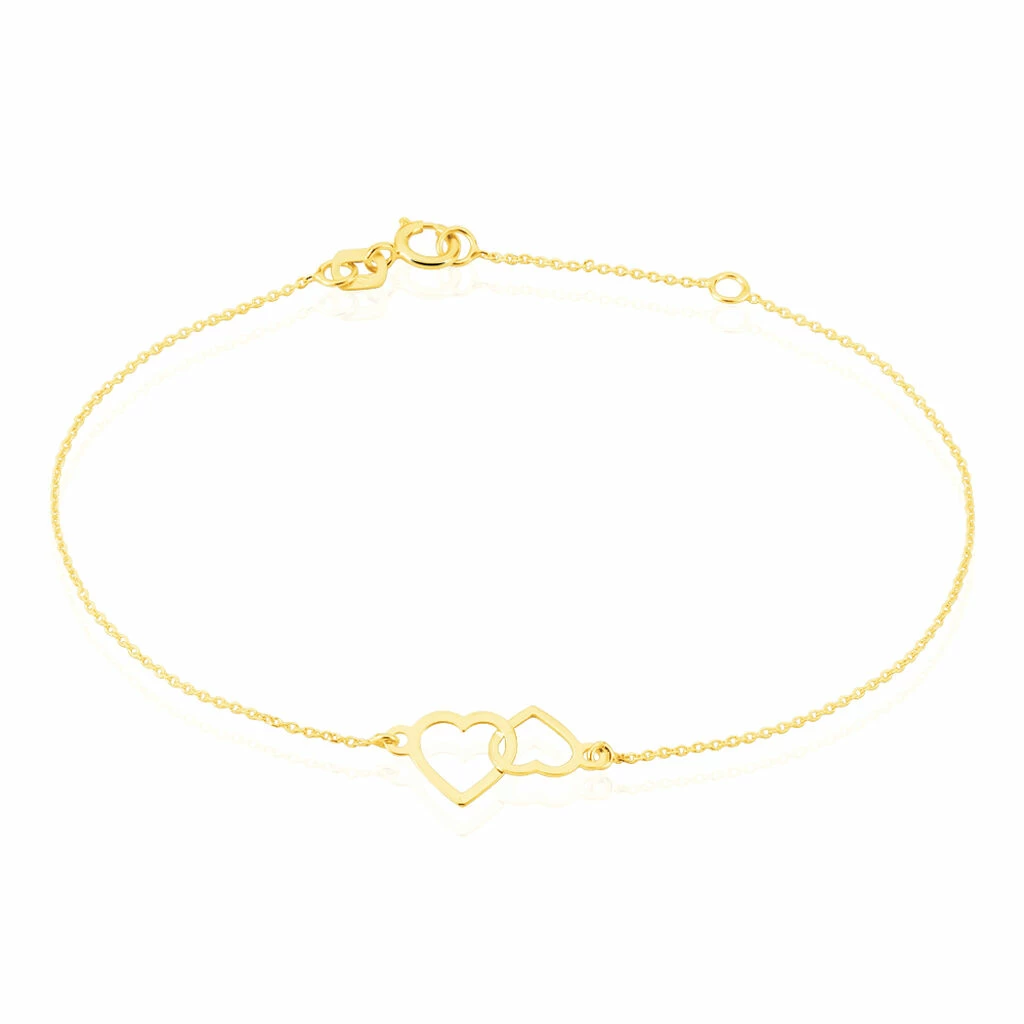 Bracelet Or Jaune 375/1000 Double Cœur Maille Jaseron 18cm