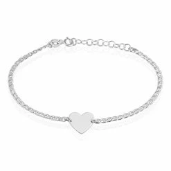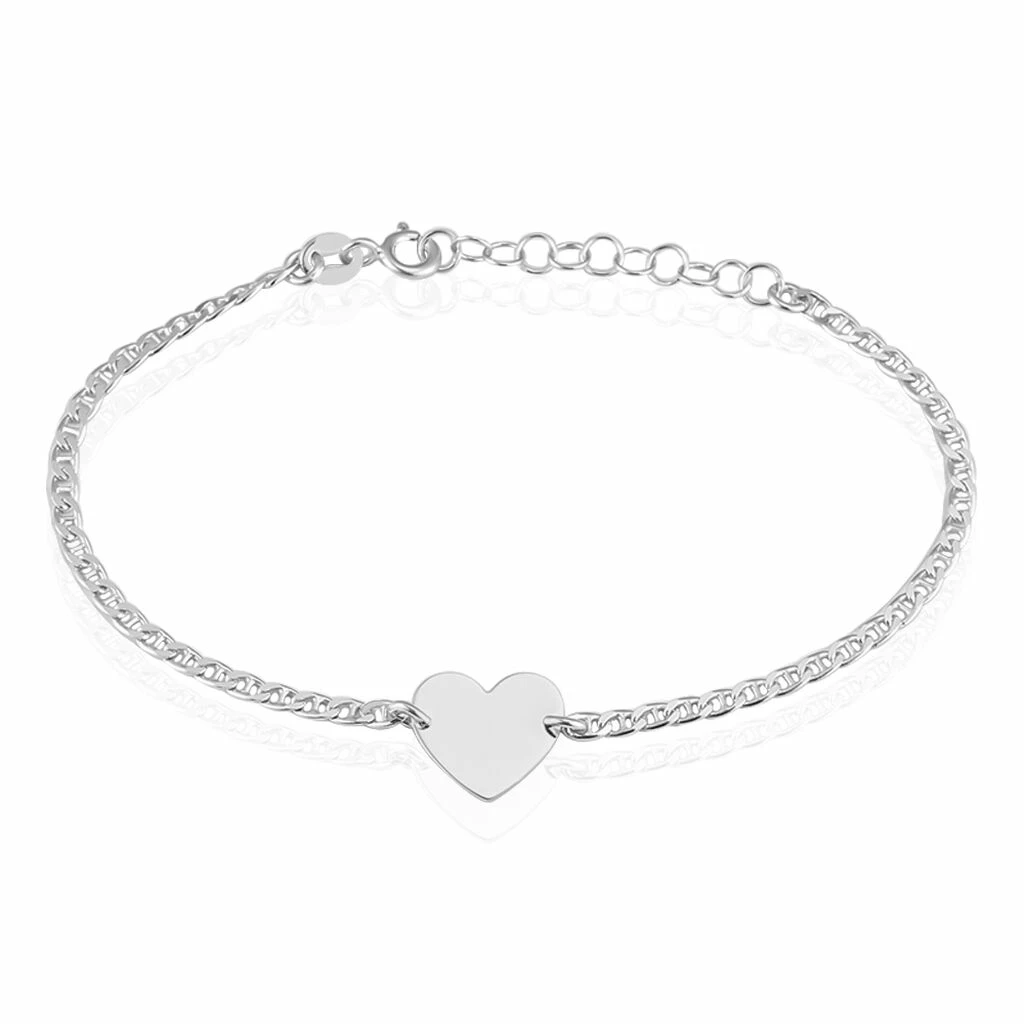Bracelet Argent Blanc 925/1000 Cœur Maille Marine 18cm