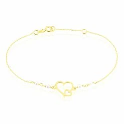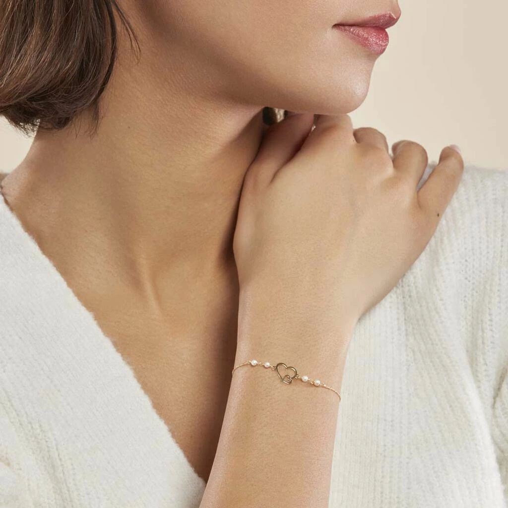 Bracelet Or Jaune 375/1000 Cœur Et Perles De Culture 18cm