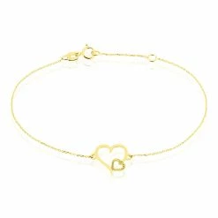 Bracelet Or Jaune 375/1000 Coeur Doubles Maille Jaseron 18cm