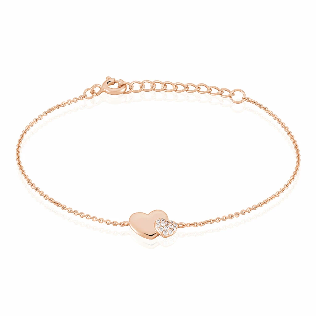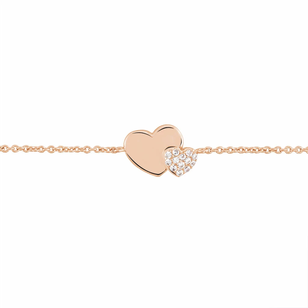 Bracelet Argent Rose 925/1000 Double Cœur Micro Setting Oxydes De Zirconium 18.5cm