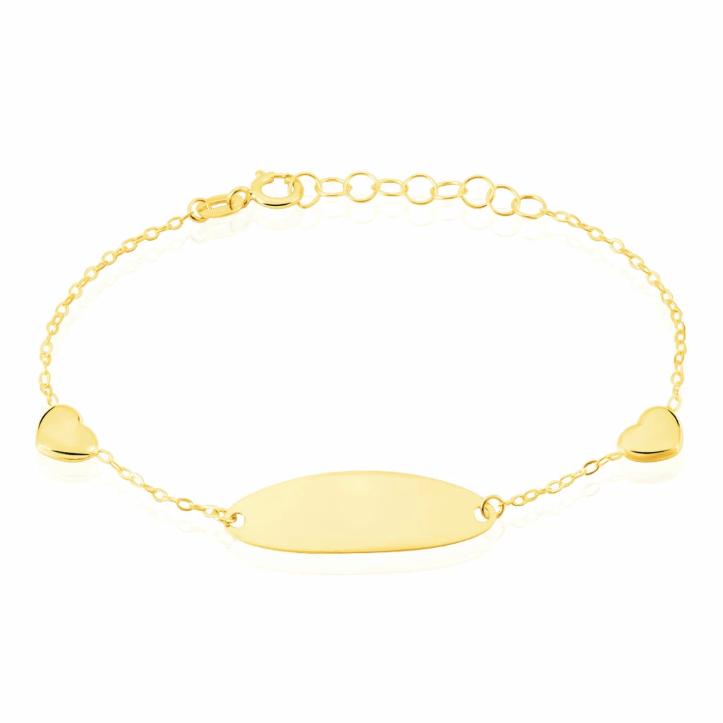 Bracelet Identité Bebe Or Jaune 375/1000 2 Cœurs 14cm