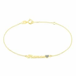 Bracelet Or Jaune 375/1000 Message Maman Lettres Decoupees Cœur Glitter Silver Maille Jaseron 18cm