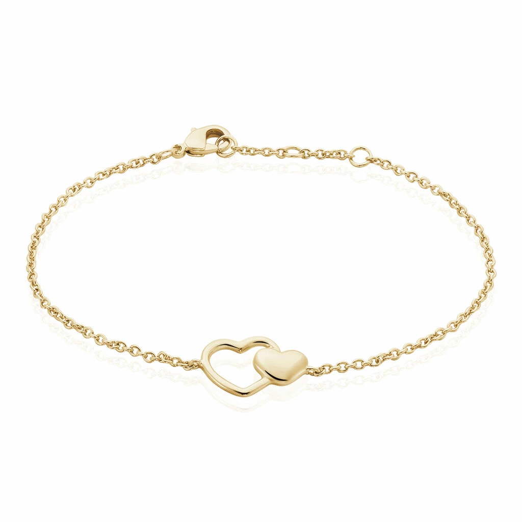 Ce bracelet en plaqué or jaune s’accorde facilement avec vos tenues. Vous allez adorer ses deux cœurs contrecollés ainsi que sa finition soignée. Le modèle est réalisé avec une délicate maille forçat et un fermoir mousqueton pratique. Un collier du même modèle est également disponible.