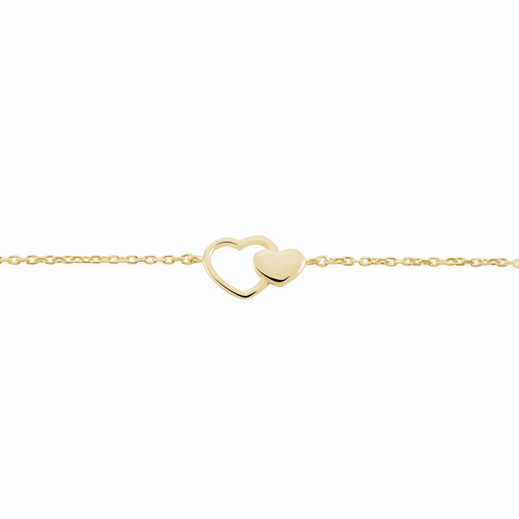 Bracelet Plaqué Or Jaune Maille Coeurs Doubles Maille Forcat 18cm