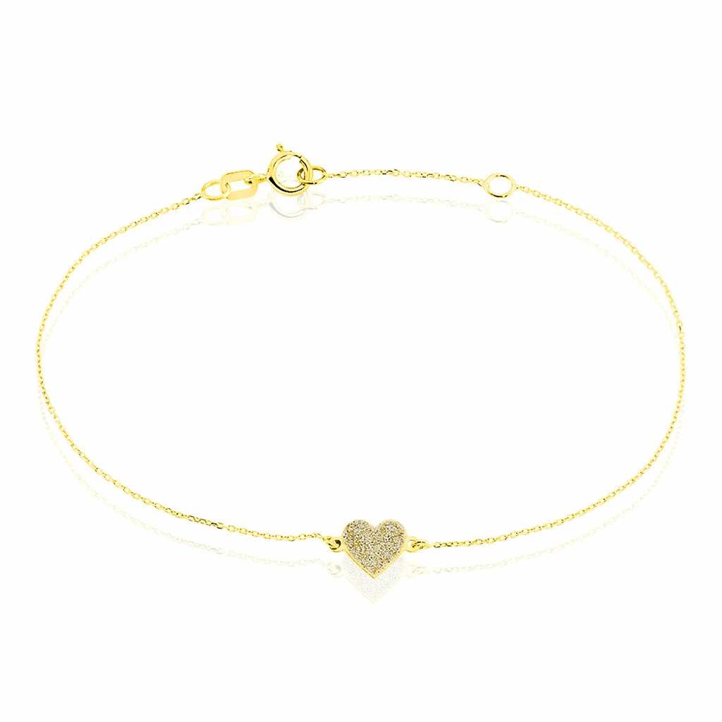 Bracelet Or Jaune 375/1000 Cœur Glitter Dore Silver 18cm