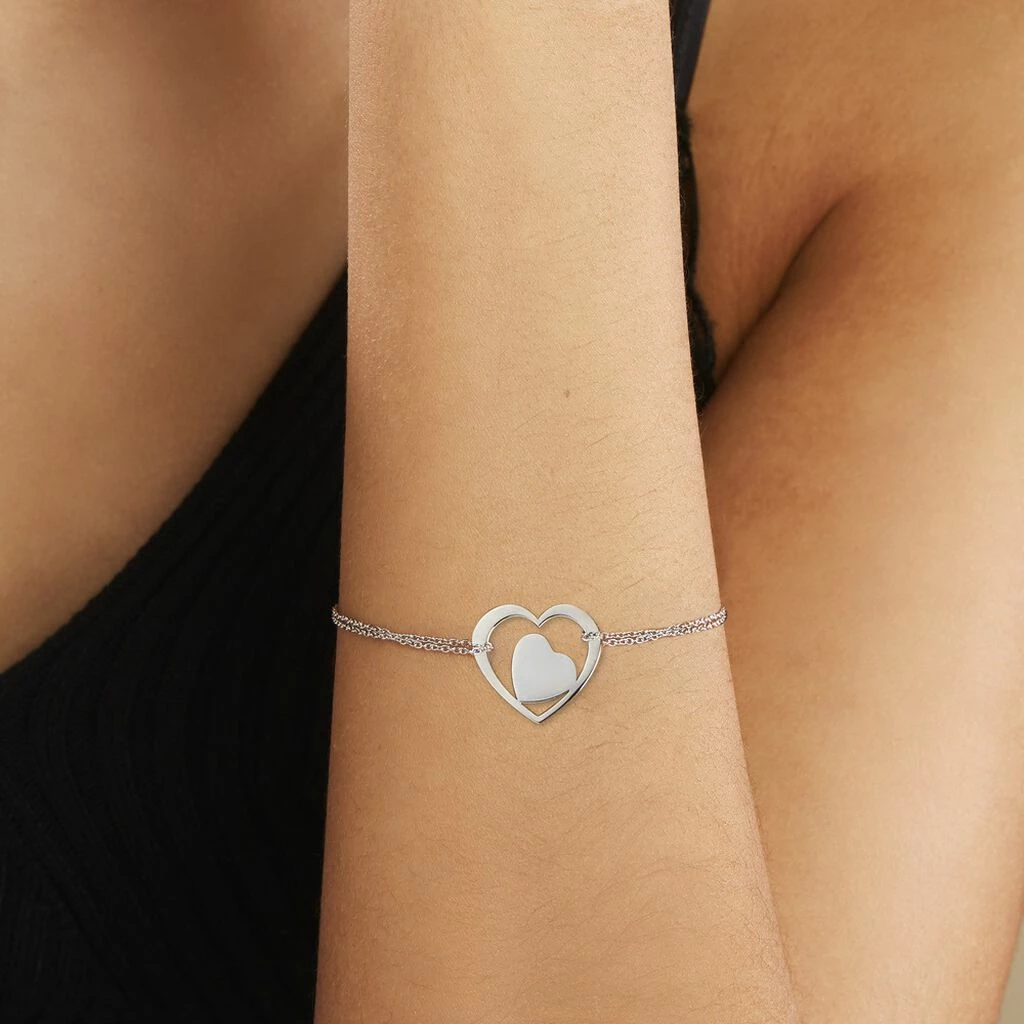 Bracelet Acier Blanc Coeur Moderne 18cm