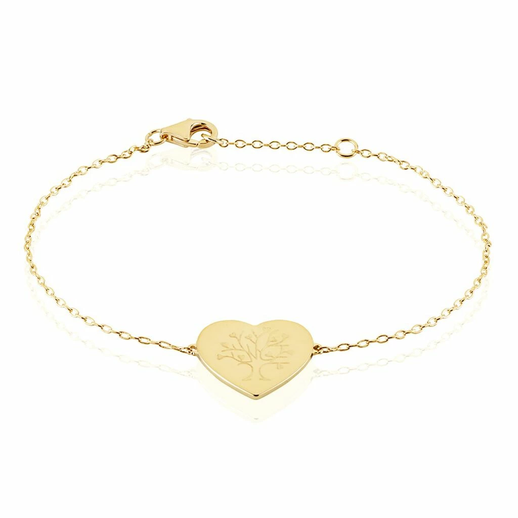 Bracelet Plaqué Or Jaune Forme Cœur Motif Arbre De Vie 18cm