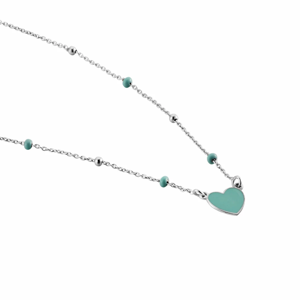 Collier Argent Blanc 925/1000 Cœur Email Bleu Maille Jaseron 38cm