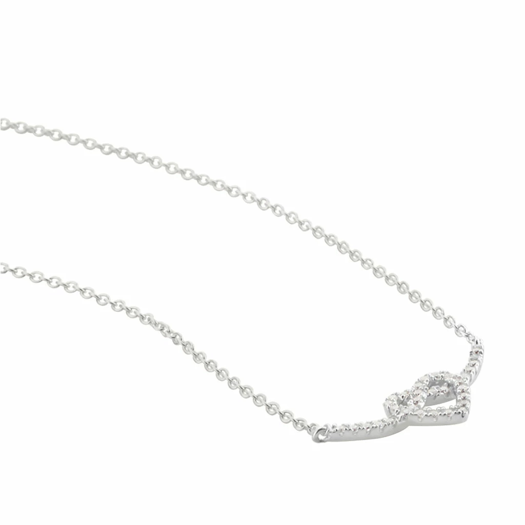 Collier Argent Blanc 925/1000 Cœur Oxydes De Zirconium Serti Griffes Maille Forçat 44cm
