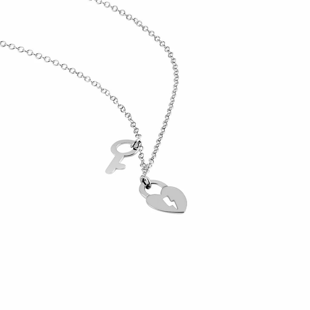 Collier Argent 925/1000 Coeur Cadenas Et Clef 42cm