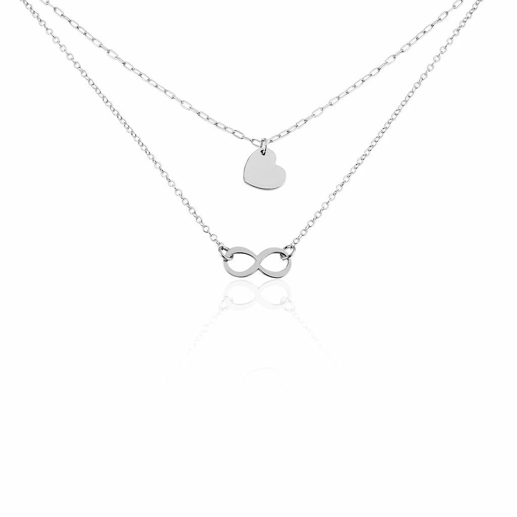 Collier Argent Blanc 925/1000 Coeur Et Infini Double Mailles Forcat Et Cheval 42cm