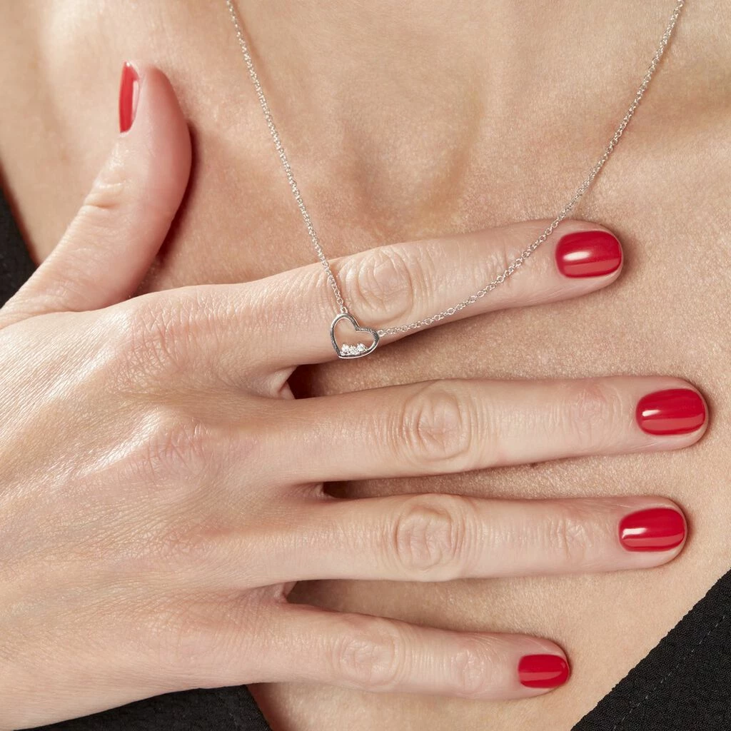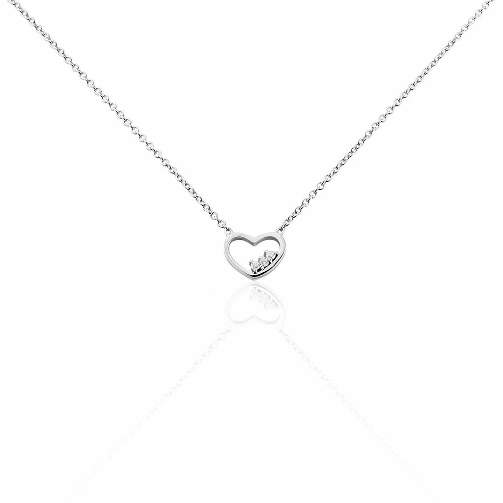 Collier Argent Blanc 925/1000 Cœur Sertis Griffes 3 Oxydes De Zirconium Maille Forcat 45cm