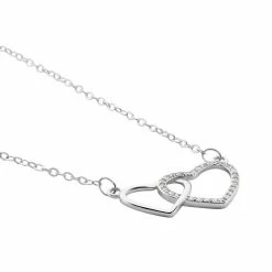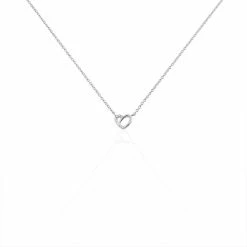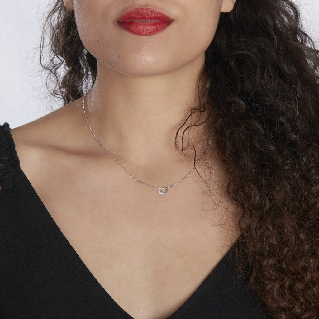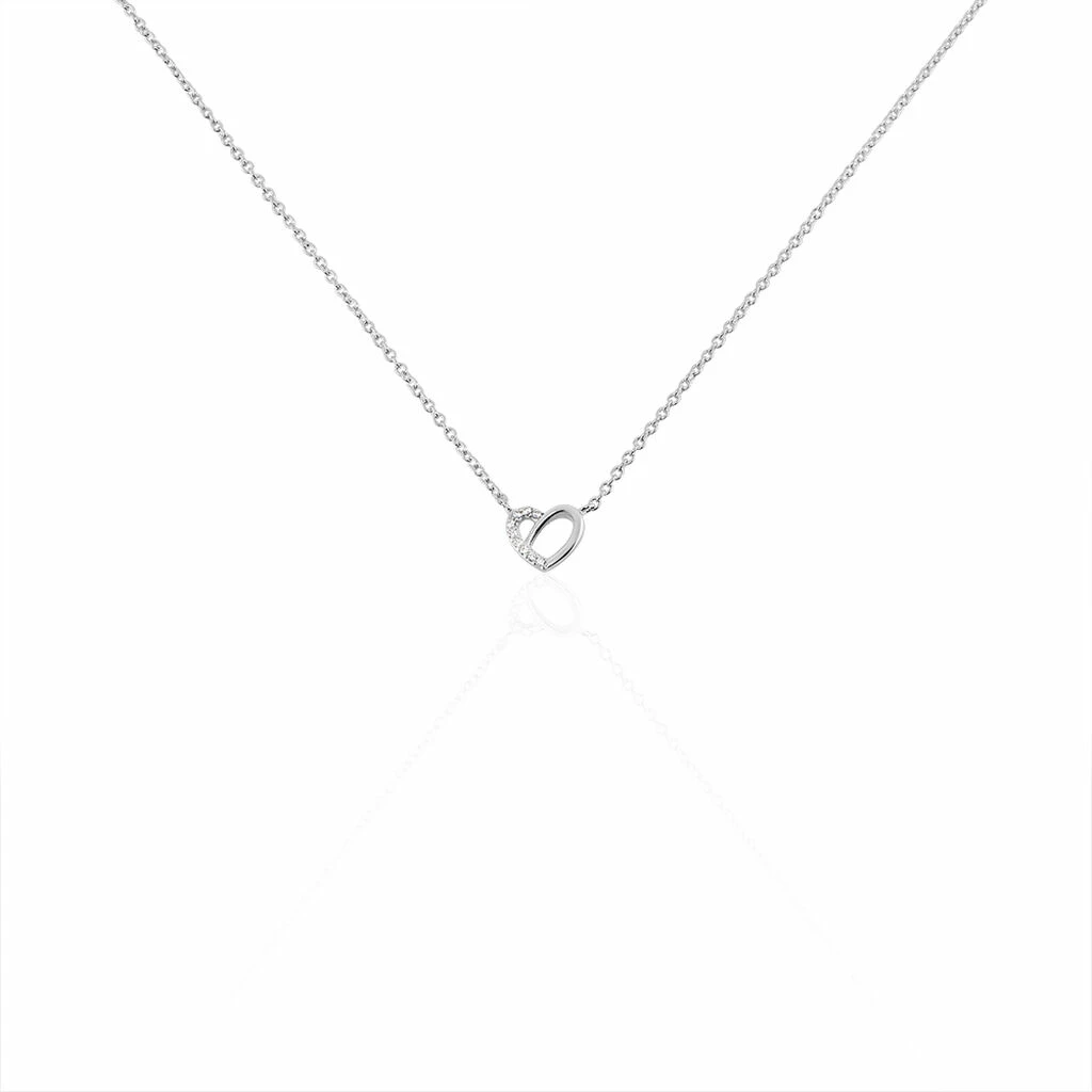 Collier Argent Blanc 925/1000 Dessin De Cœur Micro Setting Oxydes De Zirconium 45cm