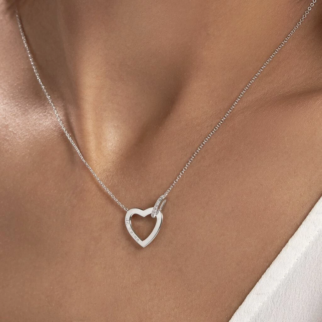 Collier Argent Blanc 925/1000 Motif Coeur Ajoure Avec Oxydes De Zirconium 45cm