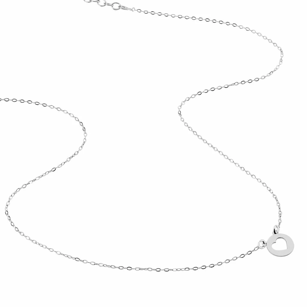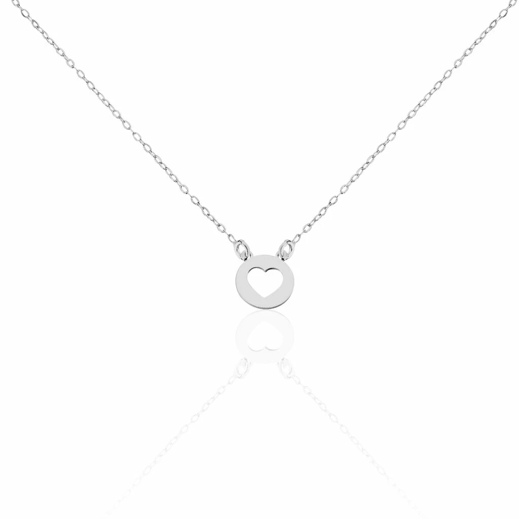 Collier Argent Blanc 925/1000 Pastille Motif Coeur Ajoure Maille Forcat 40cm