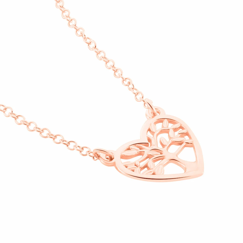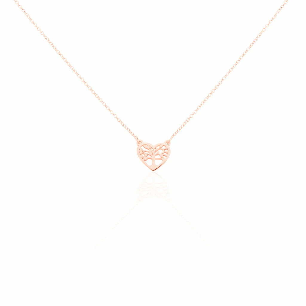 Collier Argent Rose 925/1000 Arbre De Vie Coeur Maille Forcat 40cm