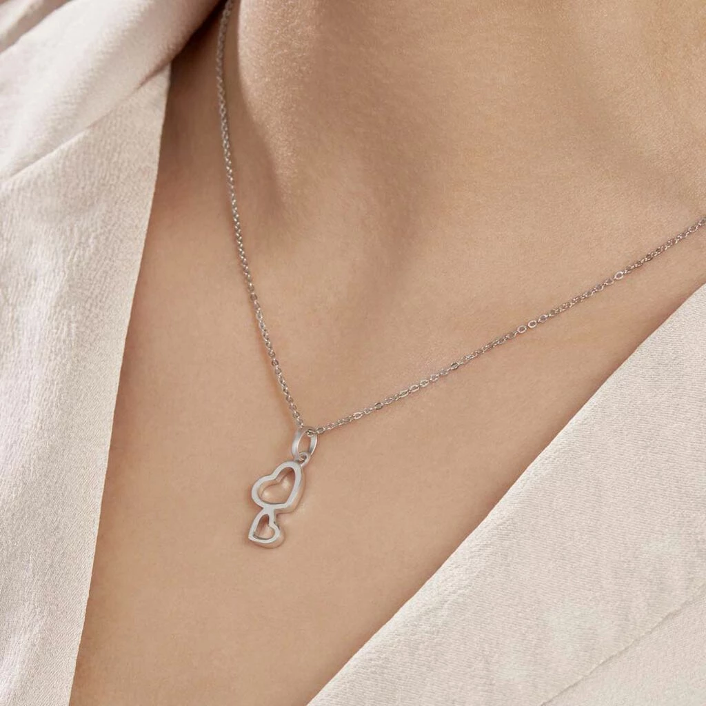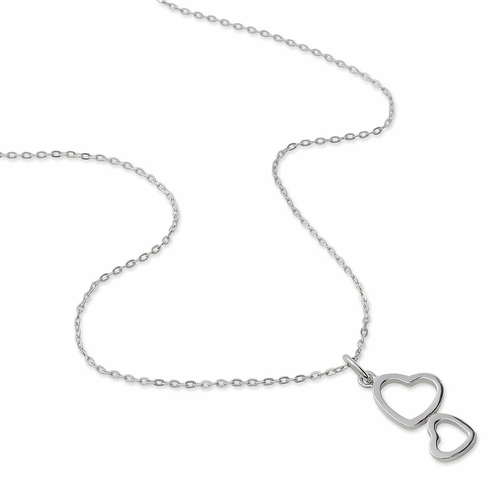 Collier Argent Blanc 925/1000 Double Coeurs Ajoures Maille Forcat 42cm