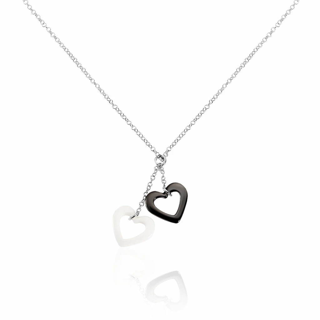 Collier Argent 925/1000 Cœurs Céramique Noire Et Blanche 45cm