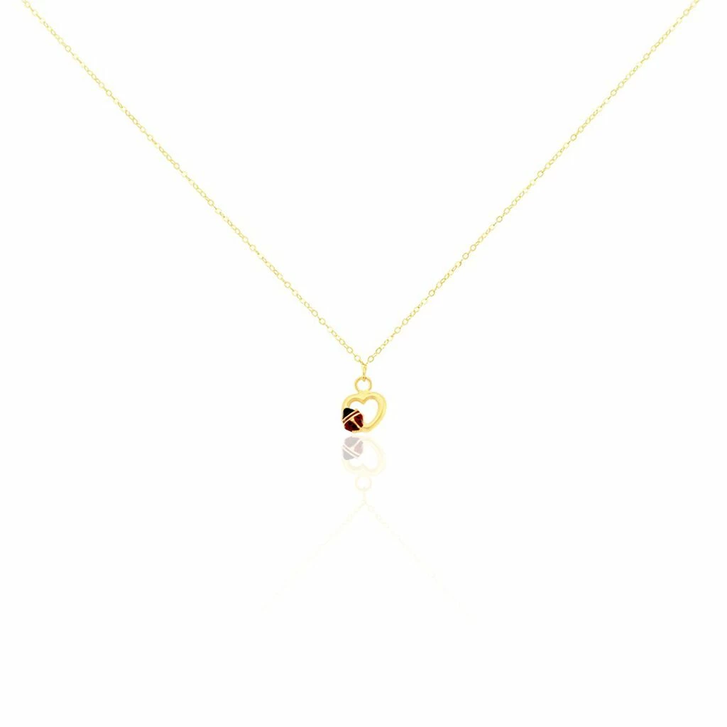 Collier Or Jaune 375/1000 Maille Forçat Cœur Et Coccinelle 38cm