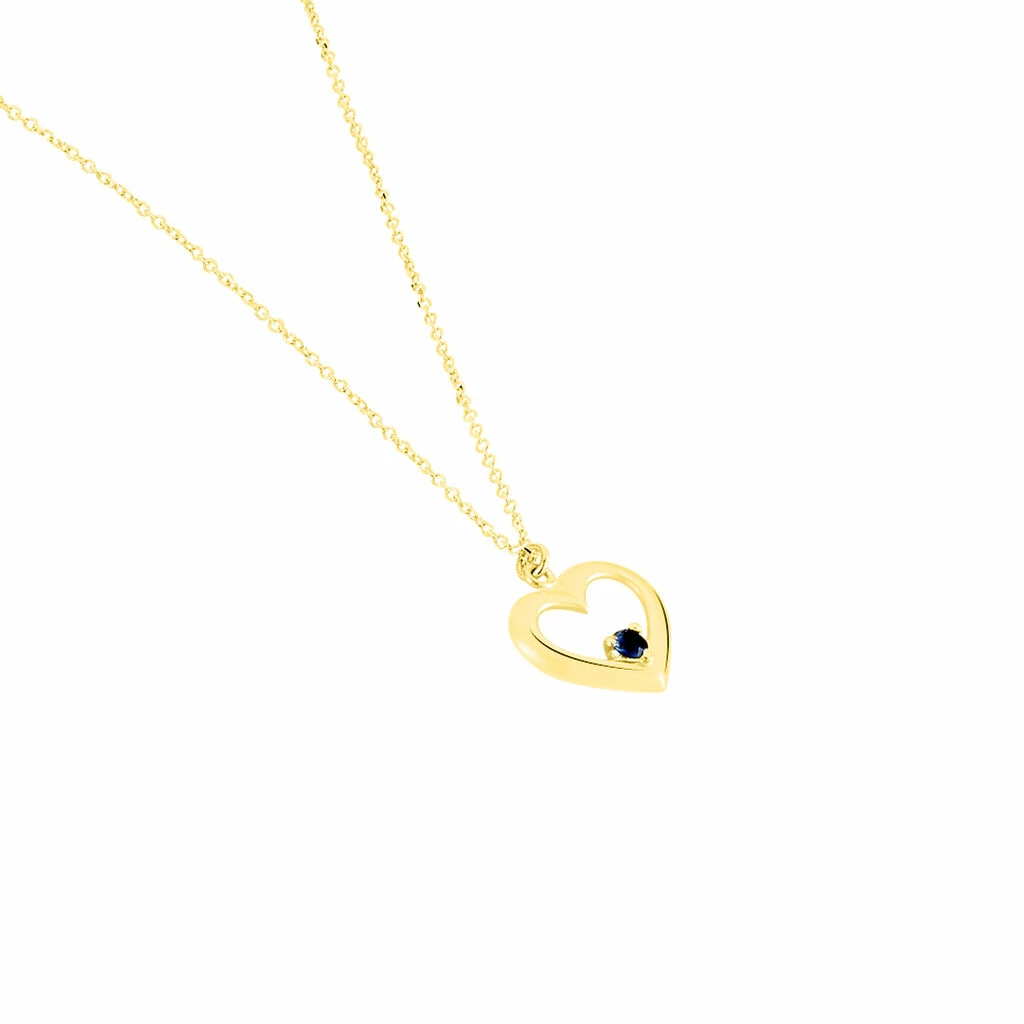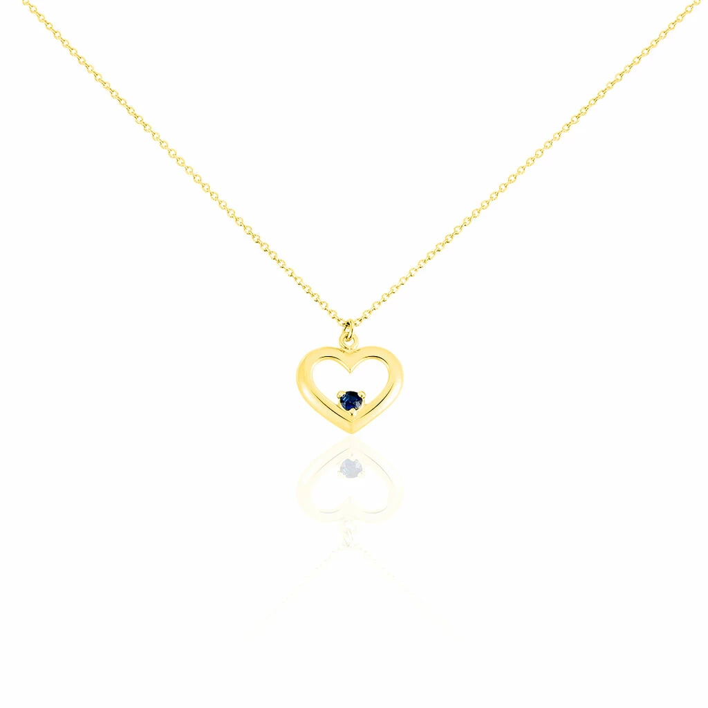 Collier Or Jaune 375/1000 Cœur Et Saphir 42cm