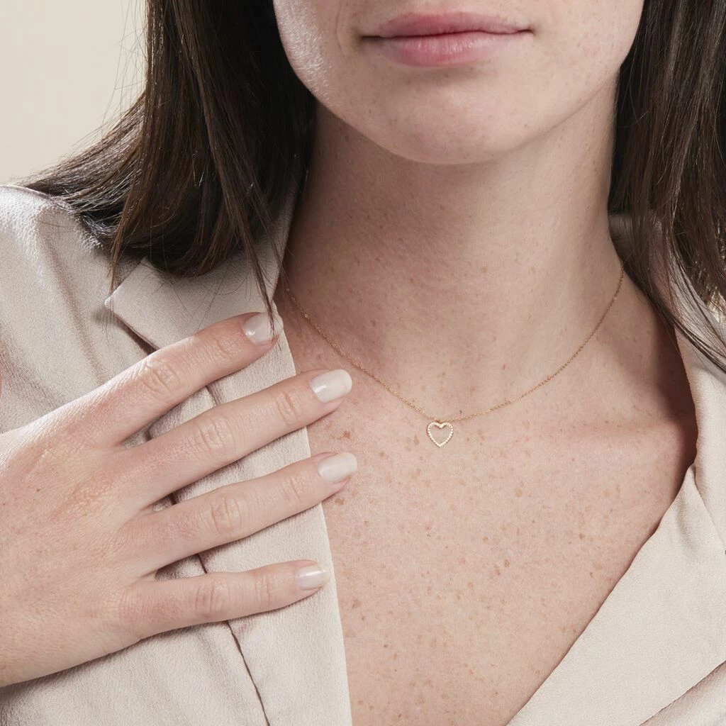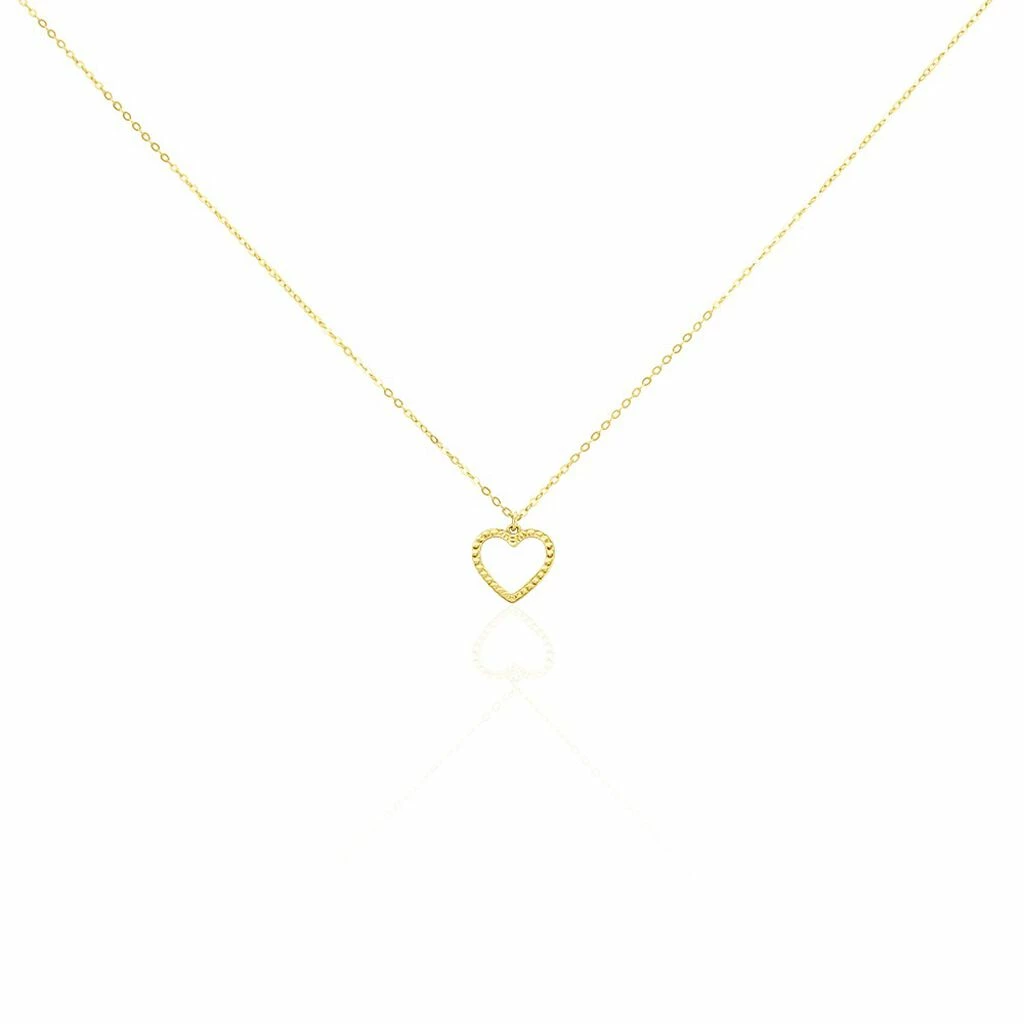 Collier Or Jaune 375/1000 Coeur Ajouré Effet Strié Maille Forçat 42cm