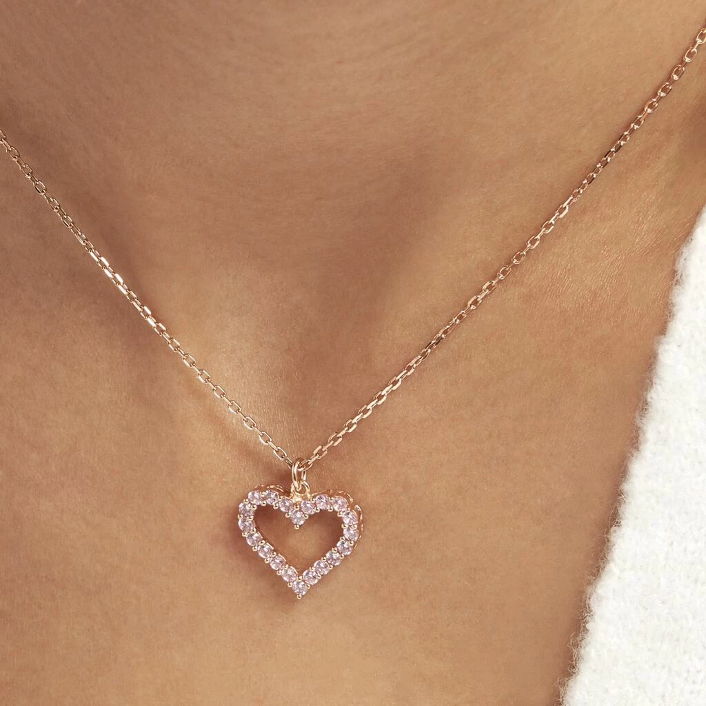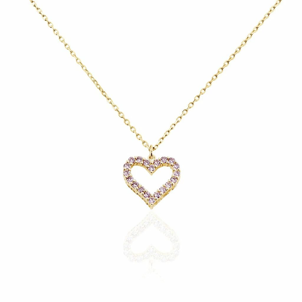 Collier Plaqué Or Jaune Cœur Oxydes De Zirconium Rose Maille Forcat 45cm