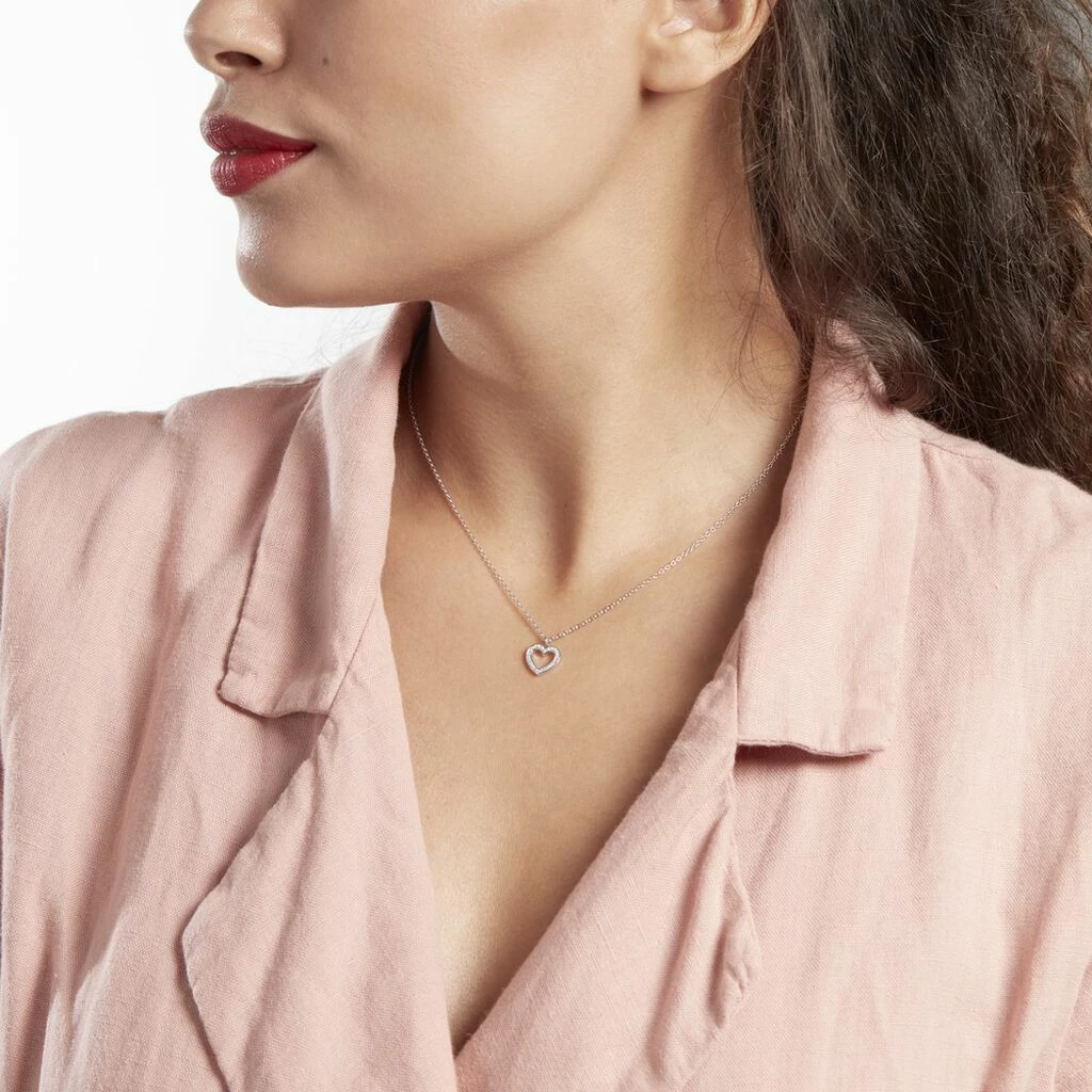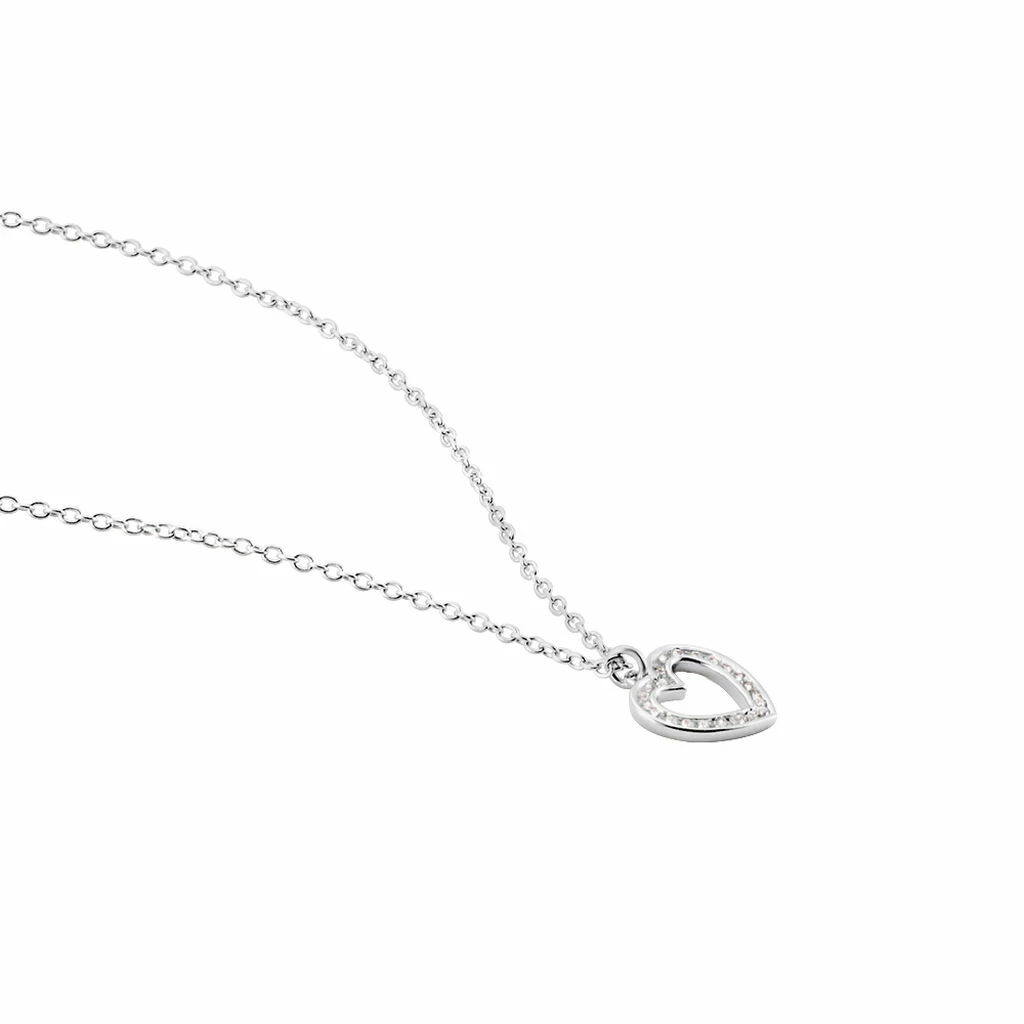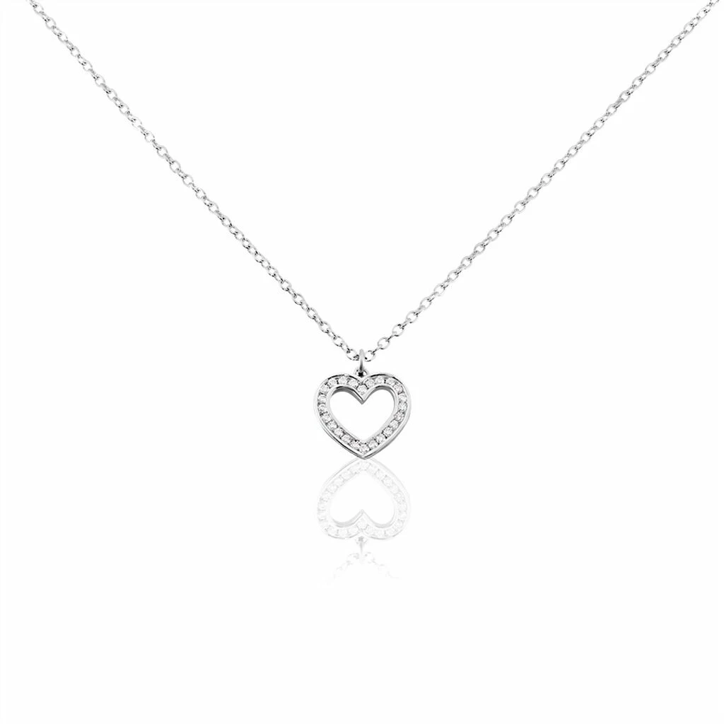 Collier Argent Blanc 925/1000 Coeur Ajoure Sertis Rail Oxydes De Zirconium Maille Forçat 45cm