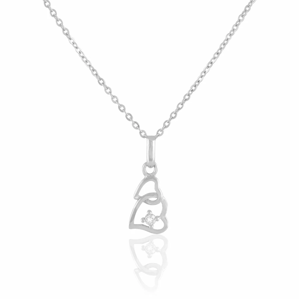 Collier Argent Blanc 925/1000 Double Coeur Oxydes De Zirconium 42cm