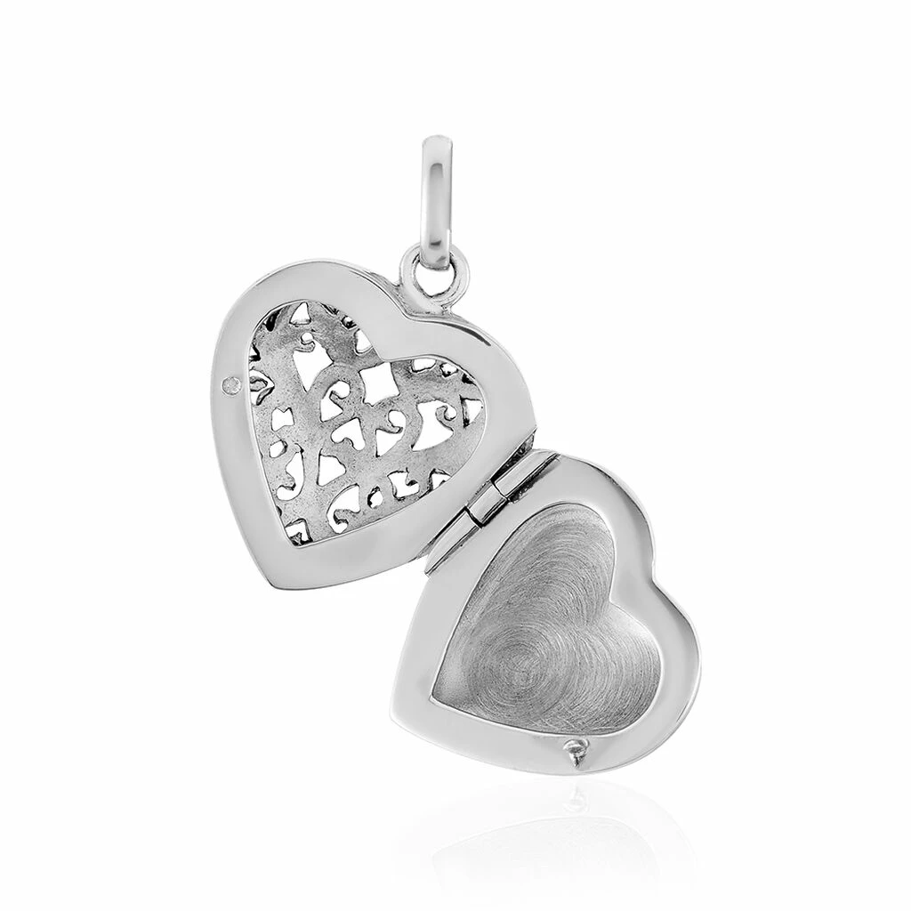Pendentif Argent Blanc 925/1000 Cassolette Forme Coeur Motifs Arabesques Ajourees Diametre 25mm