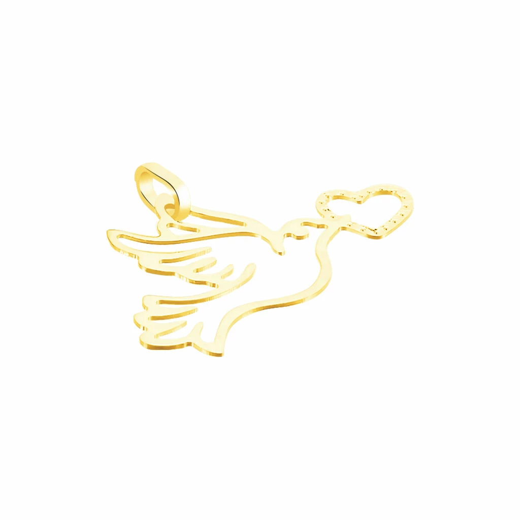 Pendentif Or Jaune 375/1000 Colombe Avec Coeur